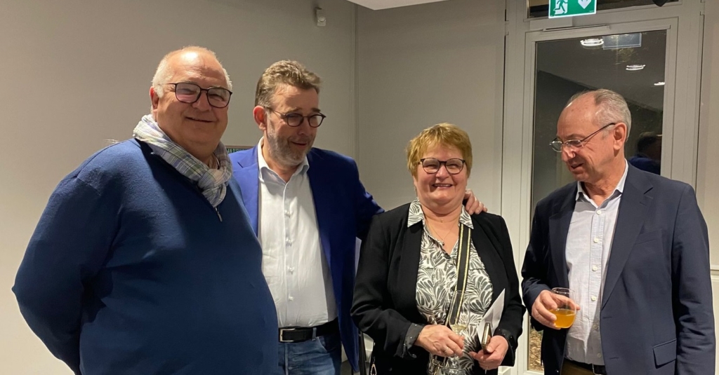 Sebastien Voisin, à gauche sur la photo, avec Sylvie Vandendriessche au centre, Louis Choain, Vice Président de l’IBTN à sa gauche et Christian Marquis, dirigeant de Combles d’en France et animateur de la table ronde de ce soir à sa droite.
